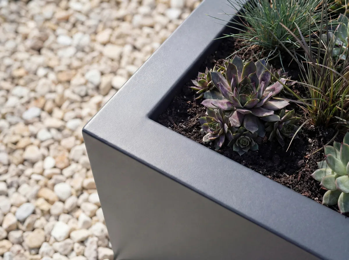 Pflanzkübel aus Aluminium sind besonders langlebig, leicht und pflegeleicht. Sie sind korrosionsbeständig und dank pulverbeschichteter Oberfläche stoß-, kratz- und lichtbeständig, sodass Farbe und Optik lange erhalten bleiben. Durch die formstabile, zu 100 % verschweißte Konstruktion, ein großzügiges Pflanzvolumen und integrierte Drainage entstehen zudem ideale Bedingungen für gesundes Pflanzenwachstum.