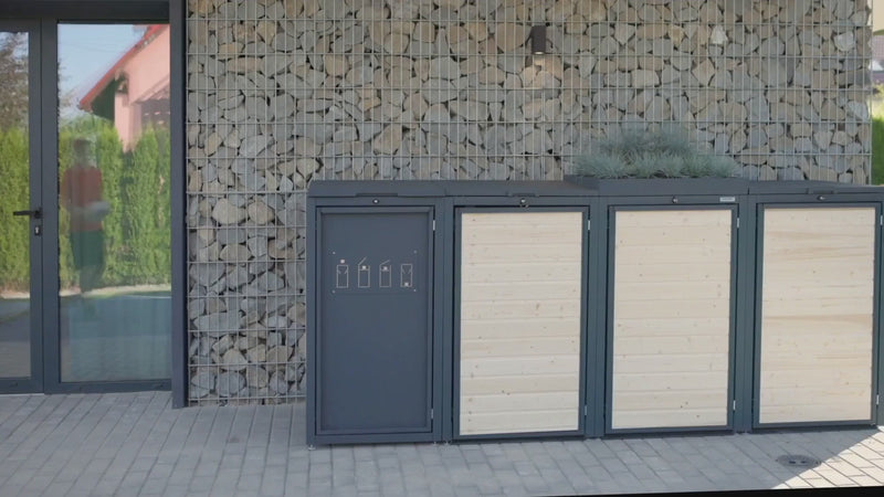 Unsere Empfehlung: Die Paketbox lässt sich mit unseren Mülltonnenboxen der ONE‑Serie einfach zu einer einheitlichen Reihenanlage kombinieren, sodass ein stimmiges Gesamtsystem entsteht.